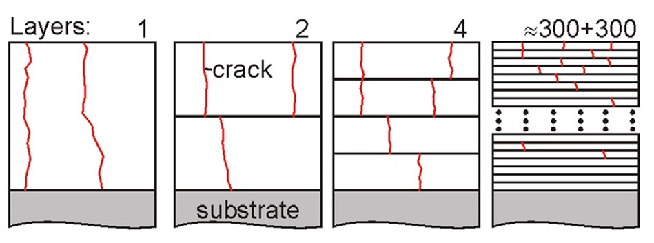 圖3 -裂紋擴(kuò)展在多層體系中被抑制