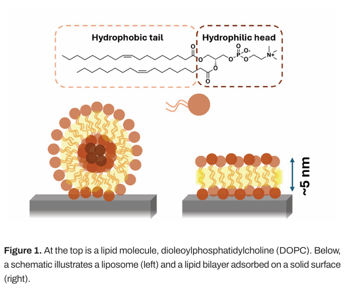 石英晶體微天平耗散測量(QCMD)作為一種研究工具在材料科學、生物物理學、電化學和免疫傳感等廣泛領(lǐng)域得到了廣泛的應(yīng)用。其廣泛應(yīng)用背后的一個關(guān)鍵因素是它能夠以無標簽和易于使用的方式在固/液界面上提供對分子組織(特別是拓撲和幾何)的見解。值得注意的是,QCMD已被證明可以區(qū)分各種表面固定的脂質(zhì)結(jié)構(gòu),如吸附脂質(zhì)體和支持脂質(zhì)雙層(slb;圖1).這種能力允許在二氧化硅涂層的QCMD傳感器上實時監(jiān)測脂質(zhì)體的SLB形成。進一步的研究表明,如何結(jié)合不同泛音的頻率和耗散測量來研究吸附脂質(zhì)體的變形。