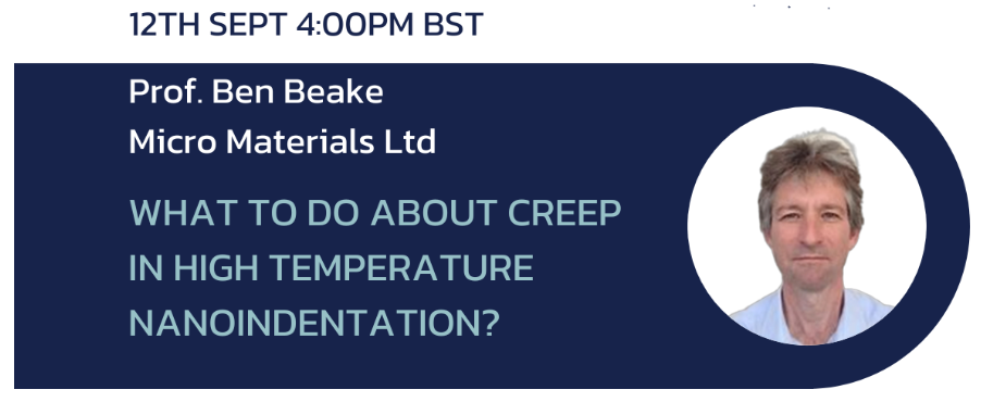 本次免費在線研討會將于9月12日(周四)下午4點(英國夏令時)開始。在研討會上,Ben Beake教授將介紹在最高溫度下納米壓痕測試中更高的蠕變所帶來的挑戰(zhàn),并展示如何使用改進的實驗設(shè)計和分析來產(chǎn)生可靠的數(shù)據(jù)——即使在超過1000攝氏度的溫度下。如果您還想了解有關(guān)納米力學(xué)行業(yè)領(lǐng)先的高溫納米壓痕能力的信息,溫度高達或超過1000攝氏度,請報名參會。